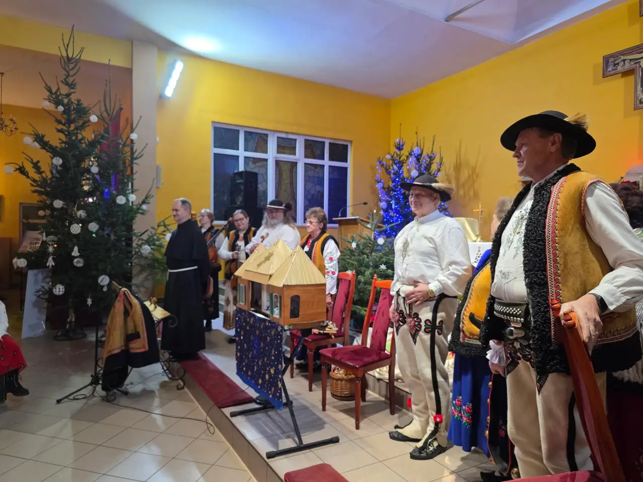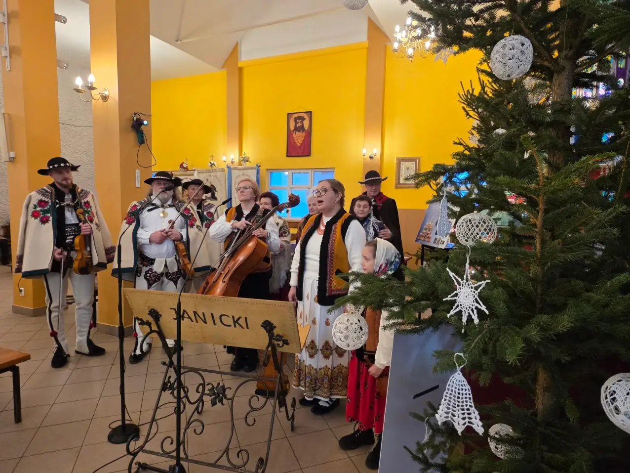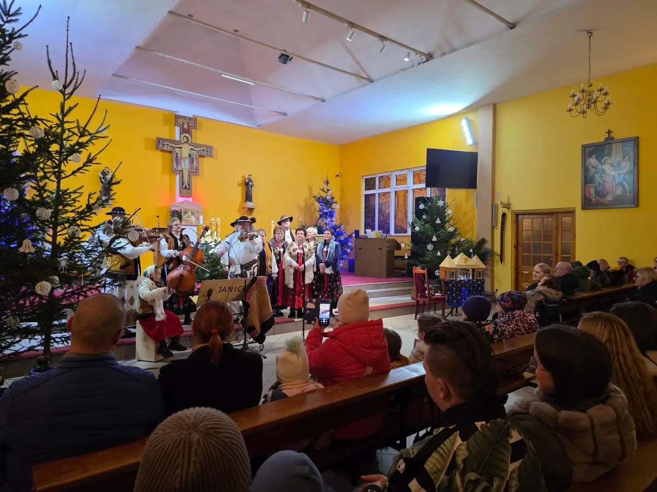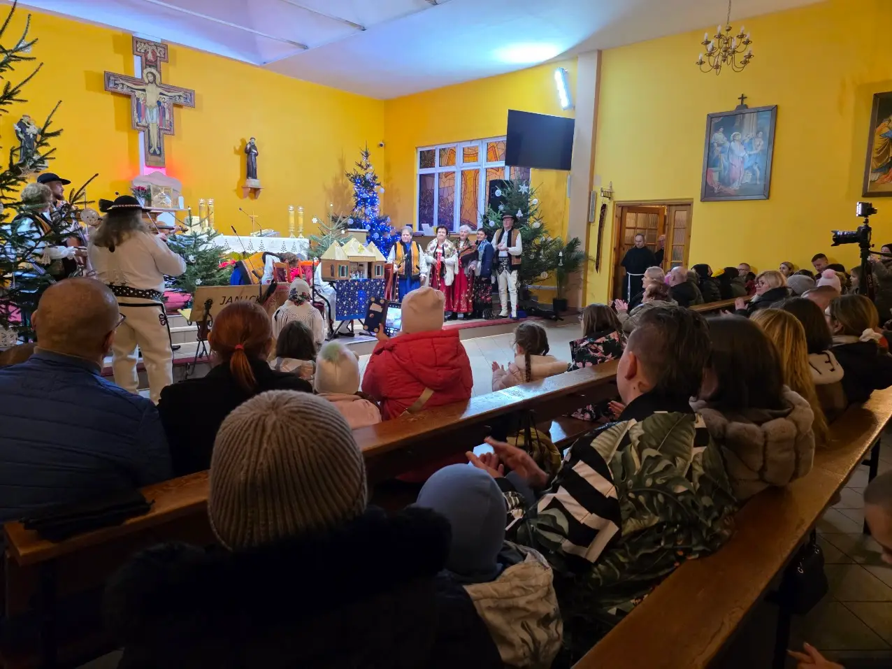 W niedzielę 28 grudnia w święto Świętej Rodziny gościliśmy w naszej Wspólnocie Parafialnej zespół góralski „Janicki” z Czarnego Boru, który podczas Mszy świętych o godz. 10.00, 11.30 oraz 13.00, w czasie których wielu małżonków odnowiło swoje małżeńskie śluby modlił się razem z nami wyśpiewywanymi kolędami. Wieczorem natomiast o godz. 17.00 w ramach specjalnego koncertu zespół zaprezentował wykonane w klimacie góralskim kolędy i pastorałki. W tym wspólnym kolędowaniu uczestniczyło wielu parafian i gości.