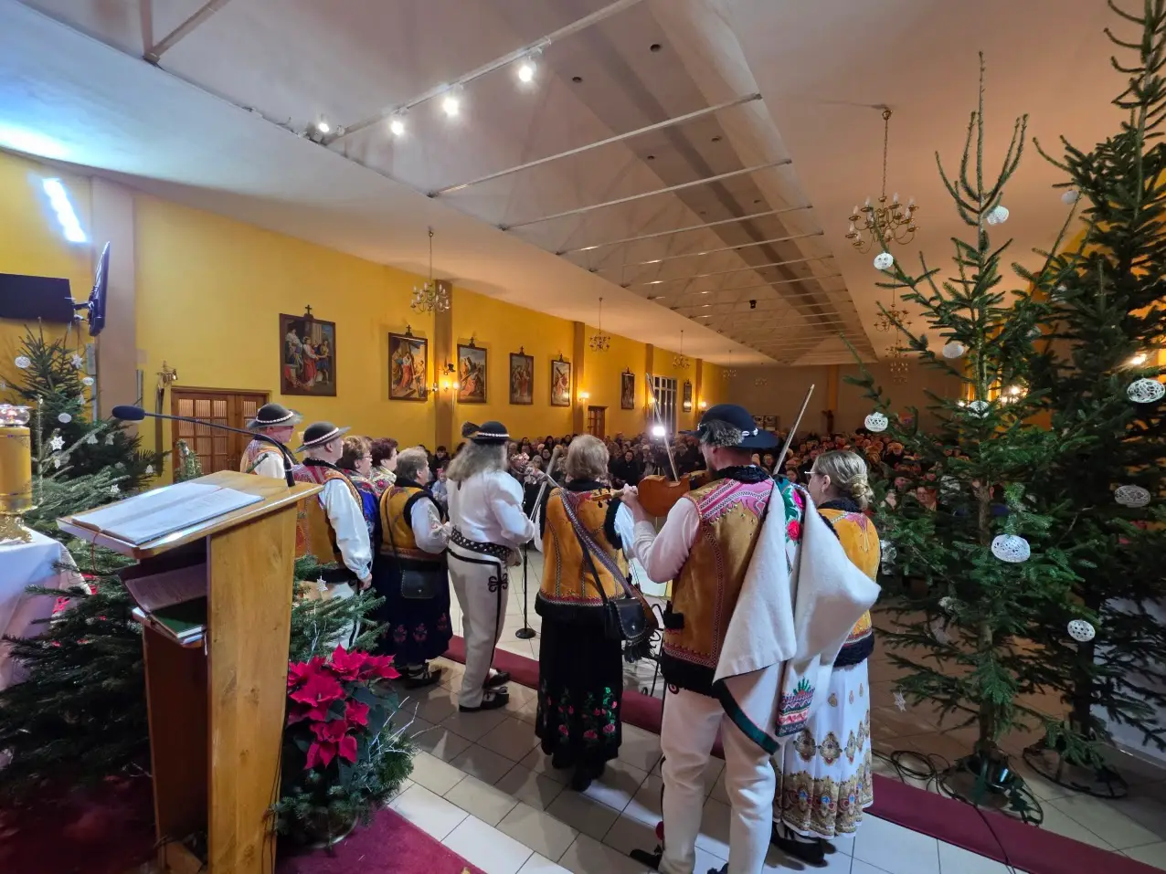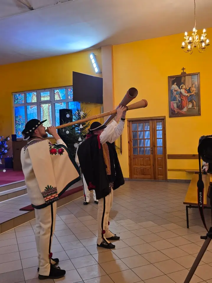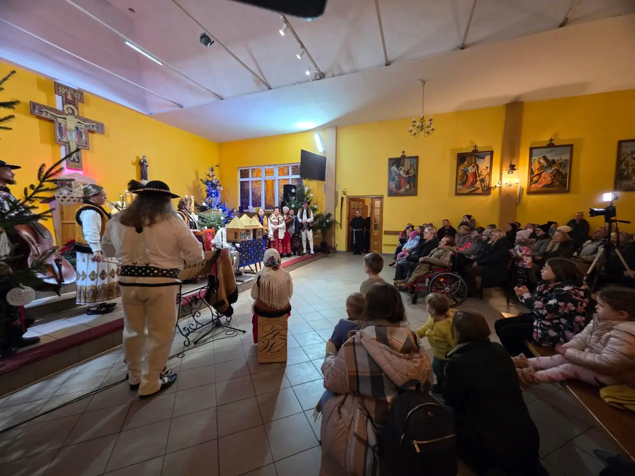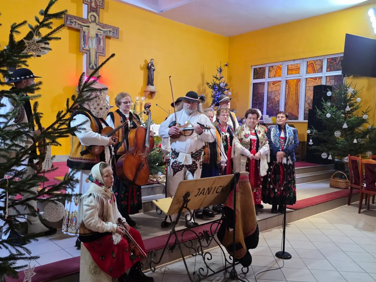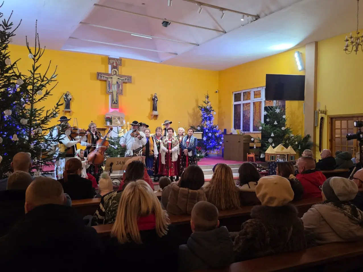 W niedzielę 28 grudnia w święto Świętej Rodziny gościliśmy w naszej Wspólnocie Parafialnej zespół góralski „Janicki” z Czarnego Boru, który podczas Mszy świętych o godz. 10.00, 11.30 oraz 13.00, w czasie których wielu małżonków odnowiło swoje małżeńskie śluby modlił się razem z nami wyśpiewywanymi kolędami. Wieczorem natomiast o godz. 17.00 w ramach specjalnego koncertu zespół zaprezentował wykonane w klimacie góralskim kolędy i pastorałki. W tym wspólnym kolędowaniu uczestniczyło wielu parafian i gości.