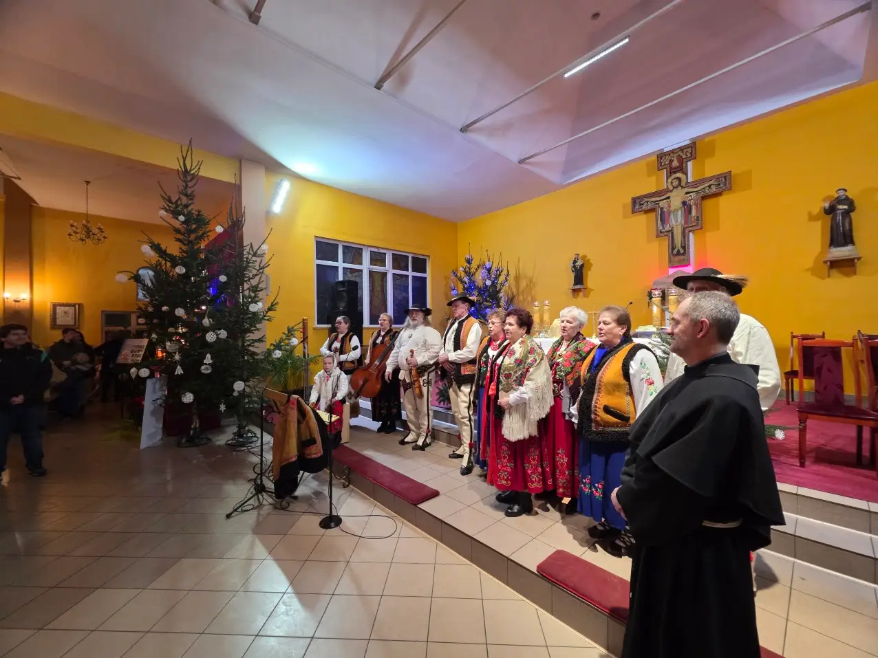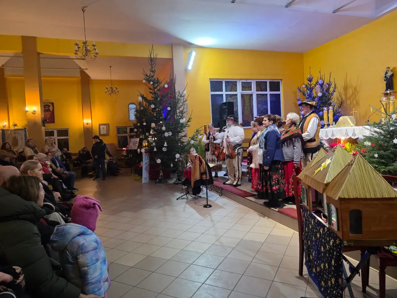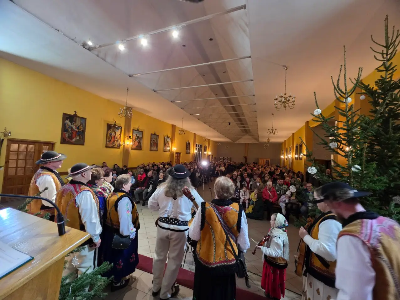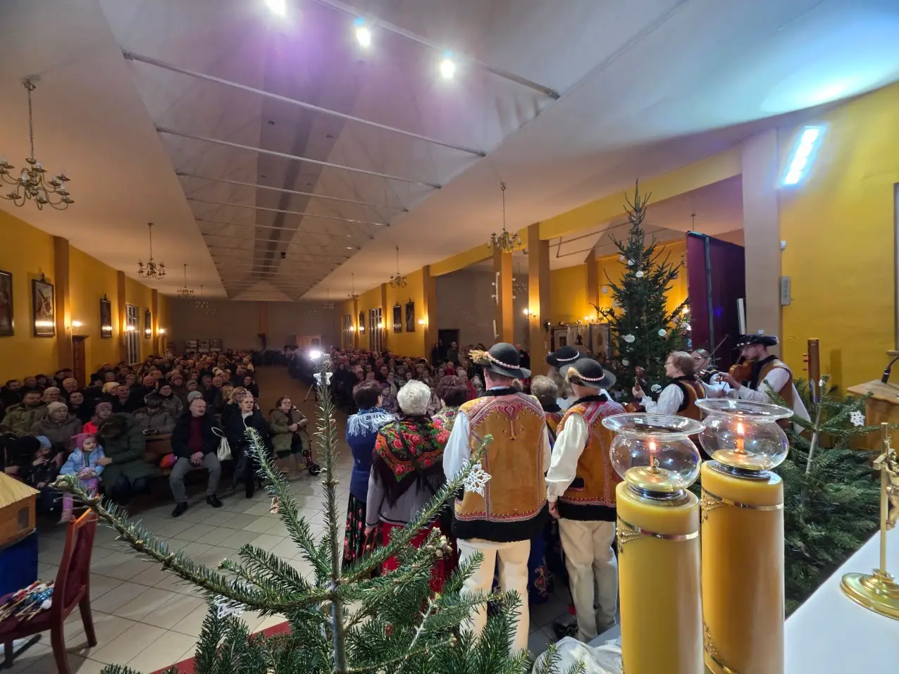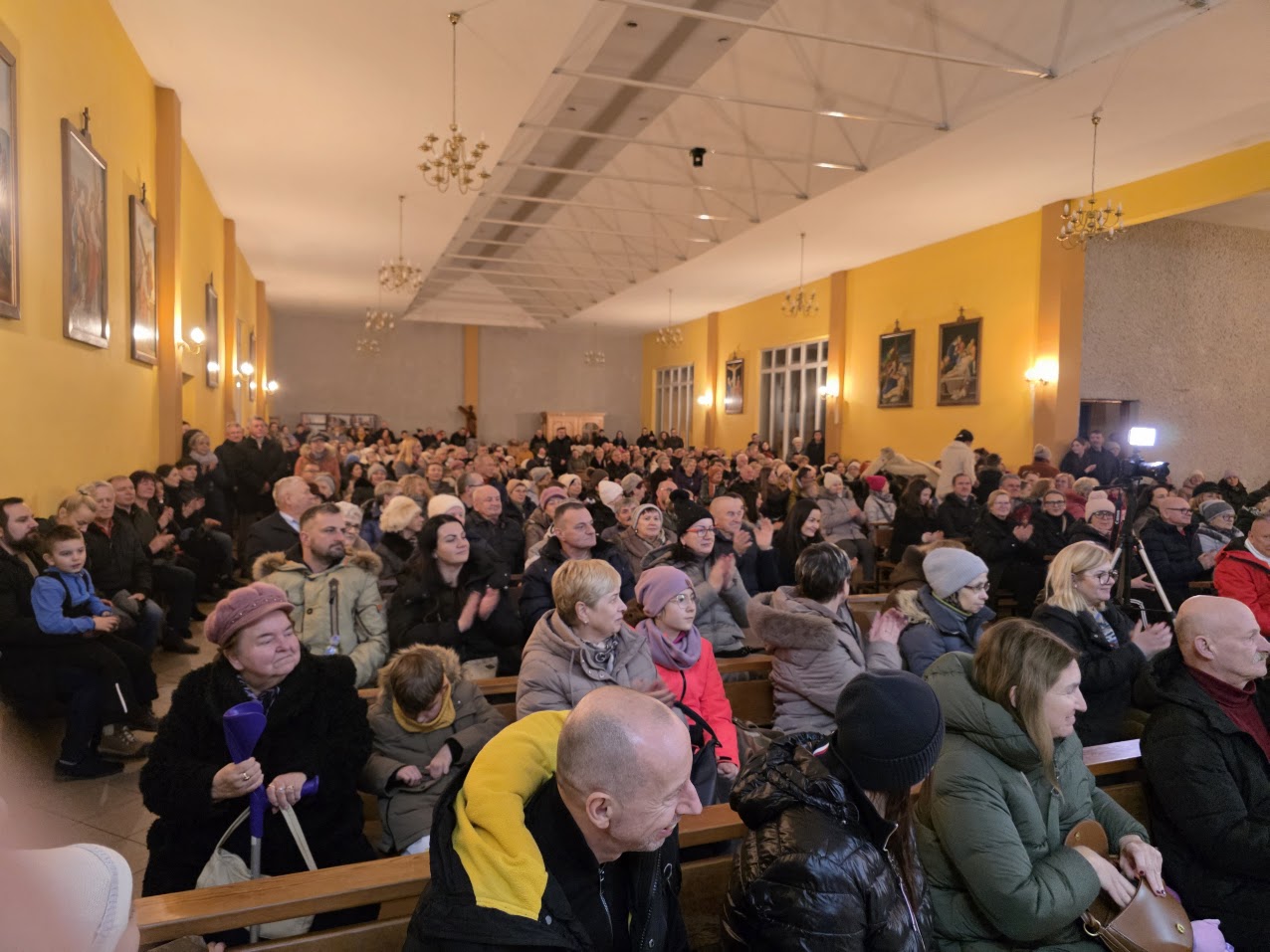 W niedzielę 28 grudnia w święto Świętej Rodziny gościliśmy w naszej Wspólnocie Parafialnej zespół góralski „Janicki” z Czarnego Boru, który podczas Mszy świętych o godz. 10.00, 11.30 oraz 13.00, w czasie których wielu małżonków odnowiło swoje małżeńskie śluby modlił się razem z nami wyśpiewywanymi kolędami. Wieczorem natomiast o godz. 17.00 w ramach specjalnego koncertu zespół zaprezentował wykonane w klimacie góralskim kolędy i pastorałki. W tym wspólnym kolędowaniu uczestniczyło wielu parafian i gości.
