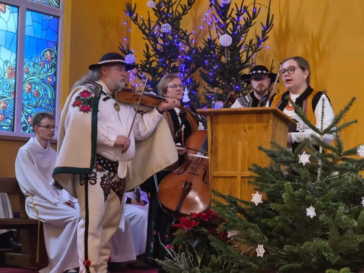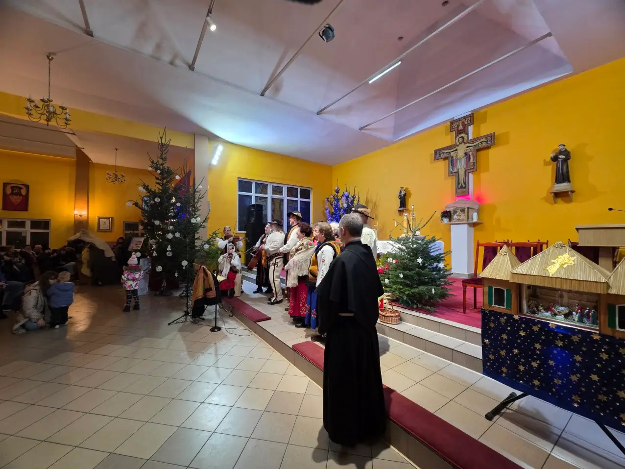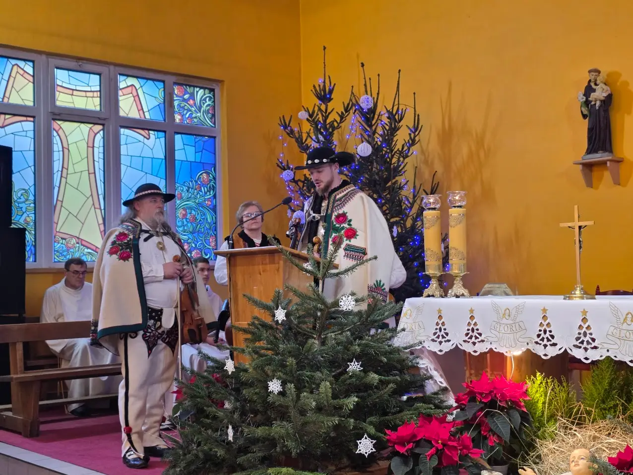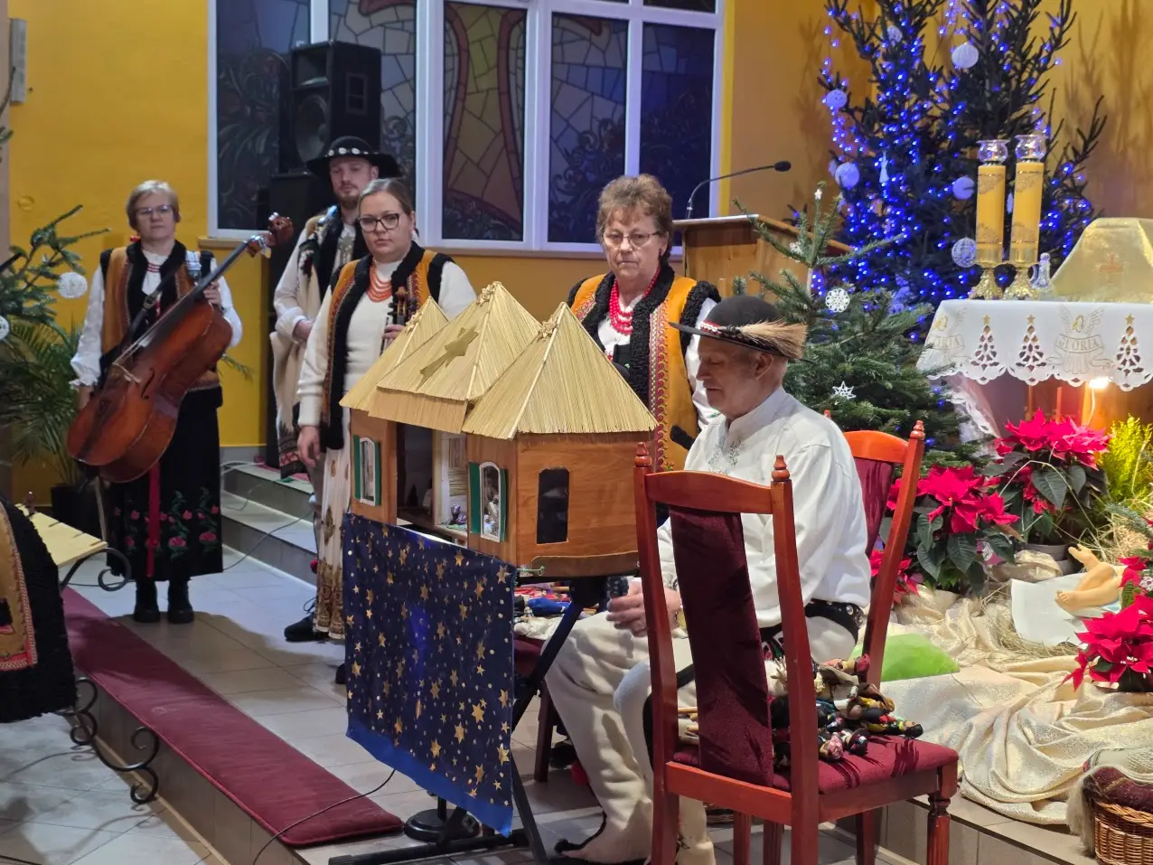 W niedzielę 28 grudnia w święto Świętej Rodziny gościliśmy w naszej Wspólnocie Parafialnej zespół góralski „Janicki” z Czarnego Boru, który podczas Mszy świętych o godz. 10.00, 11.30 oraz 13.00, w czasie których wielu małżonków odnowiło swoje małżeńskie śluby modlił się razem z nami wyśpiewywanymi kolędami. Wieczorem natomiast o godz. 17.00 w ramach specjalnego koncertu zespół zaprezentował wykonane w klimacie góralskim kolędy i pastorałki. W tym wspólnym kolędowaniu uczestniczyło wielu parafian i gości.