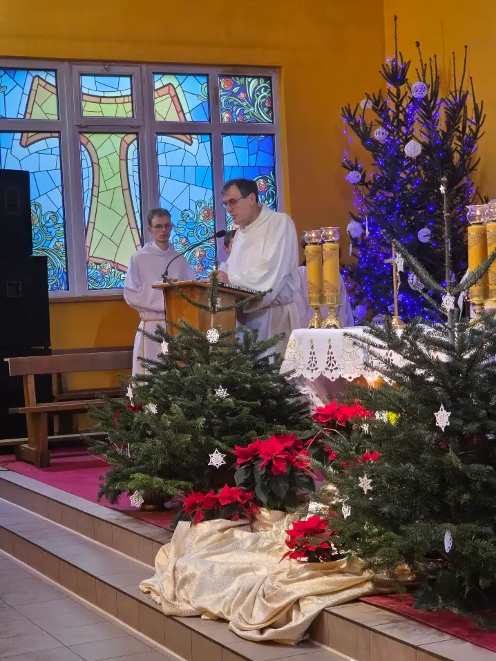 Wieczór kolędowy zakończyło odśpiewanie kolędy „Dnia jednego o północy” oraz słowa wdzięczności, które skierował do zebranych proboszcz naszej parafii o. Bronisław dziękując za wspólne uwielbienie Boga za dar Wcielenia Słowa Bożego wyrażone przez kolędowy śpiew a zespołowi „Janicki” za wspaniałe duchowe przeżycia wyrażone poprzez wykonaną muzykę i ujmujący serca śpiew kolęd i pastorałek tak bardzo wpisujących się w obecny świąteczny czas jak również w naszą ojczystą tradycję.