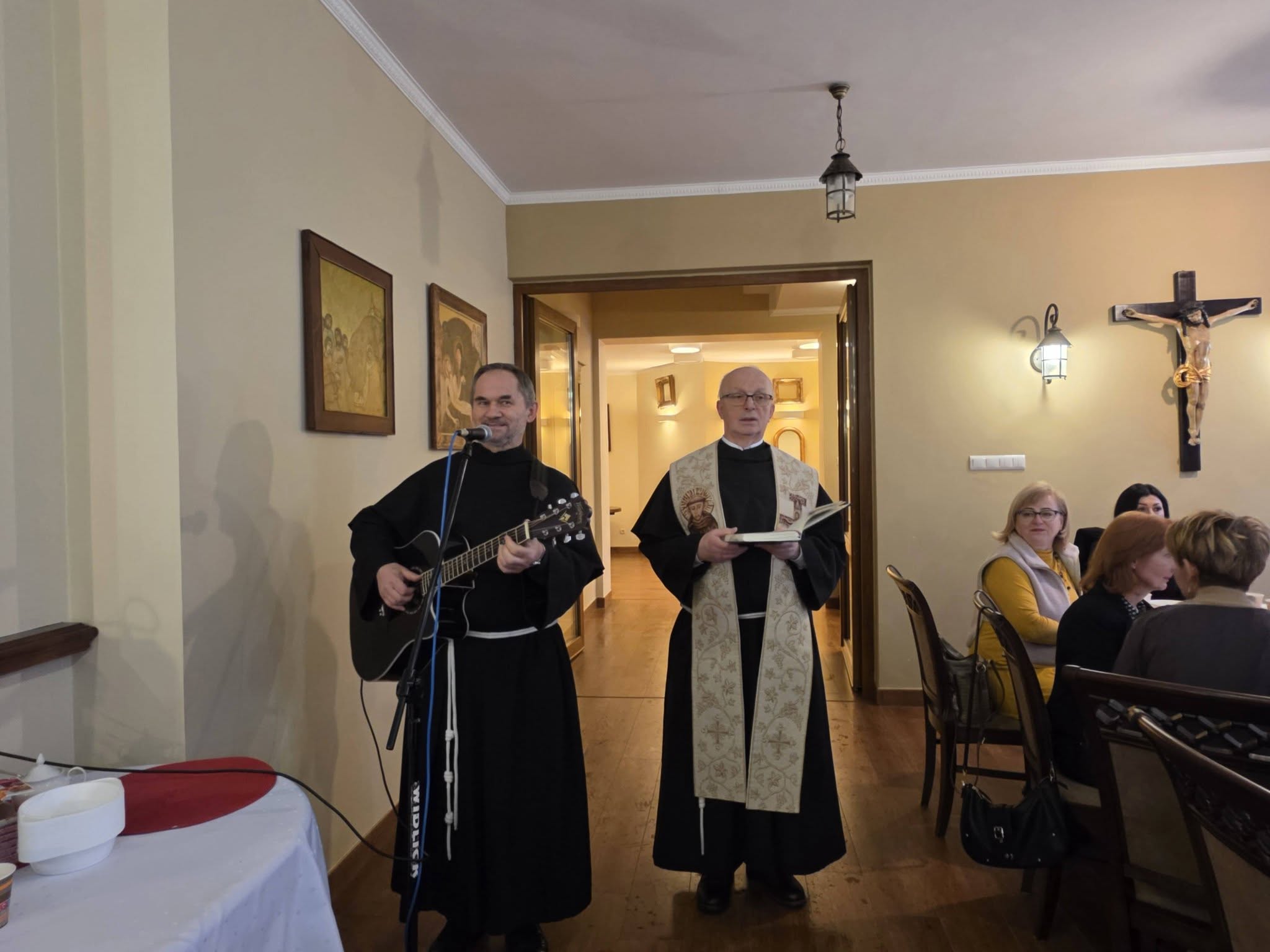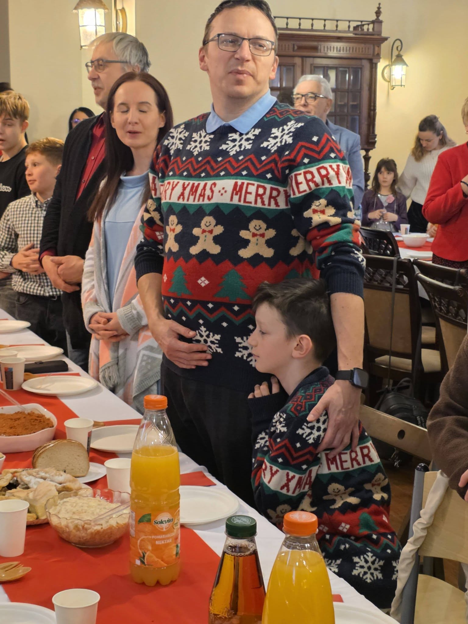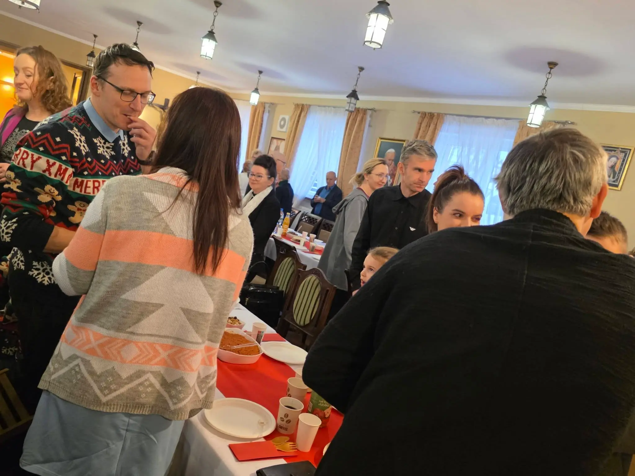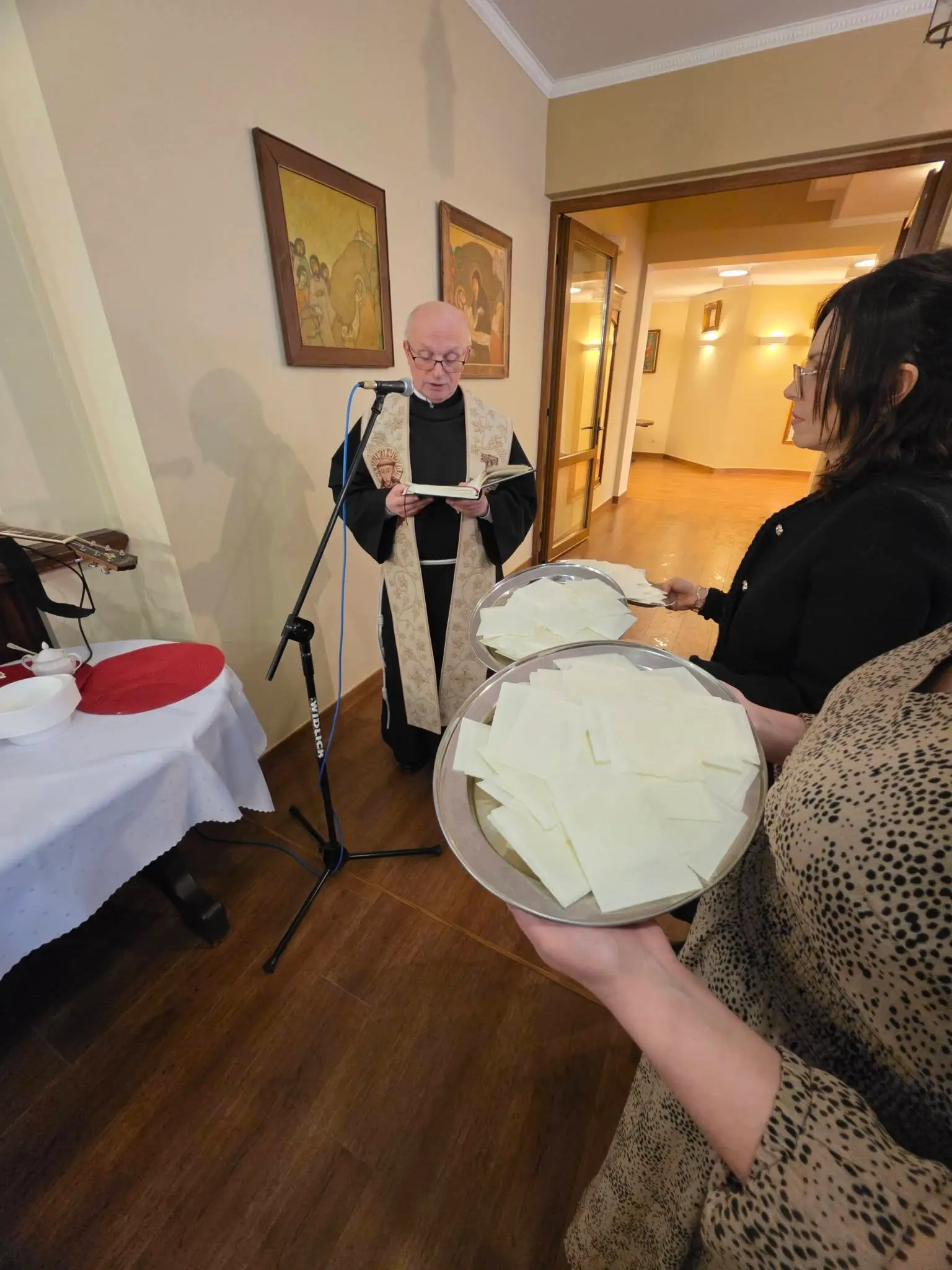 Zgodnie z tradycją wigilijną, spotkanie rozpoczęło się od wspólnej modlitwy, którą zainicjował o. Bronisław – proboszcz parafii składając życzenia a także błogosławieństwo opłatków. Następnie uczestnicy złożyli sobie płynące z głębi serca życzenia. Nie zabrakło także poczęstunku, wspólnego śpiewu kolęd oraz losowania patronów dla każdej grup duszpasterskiej.