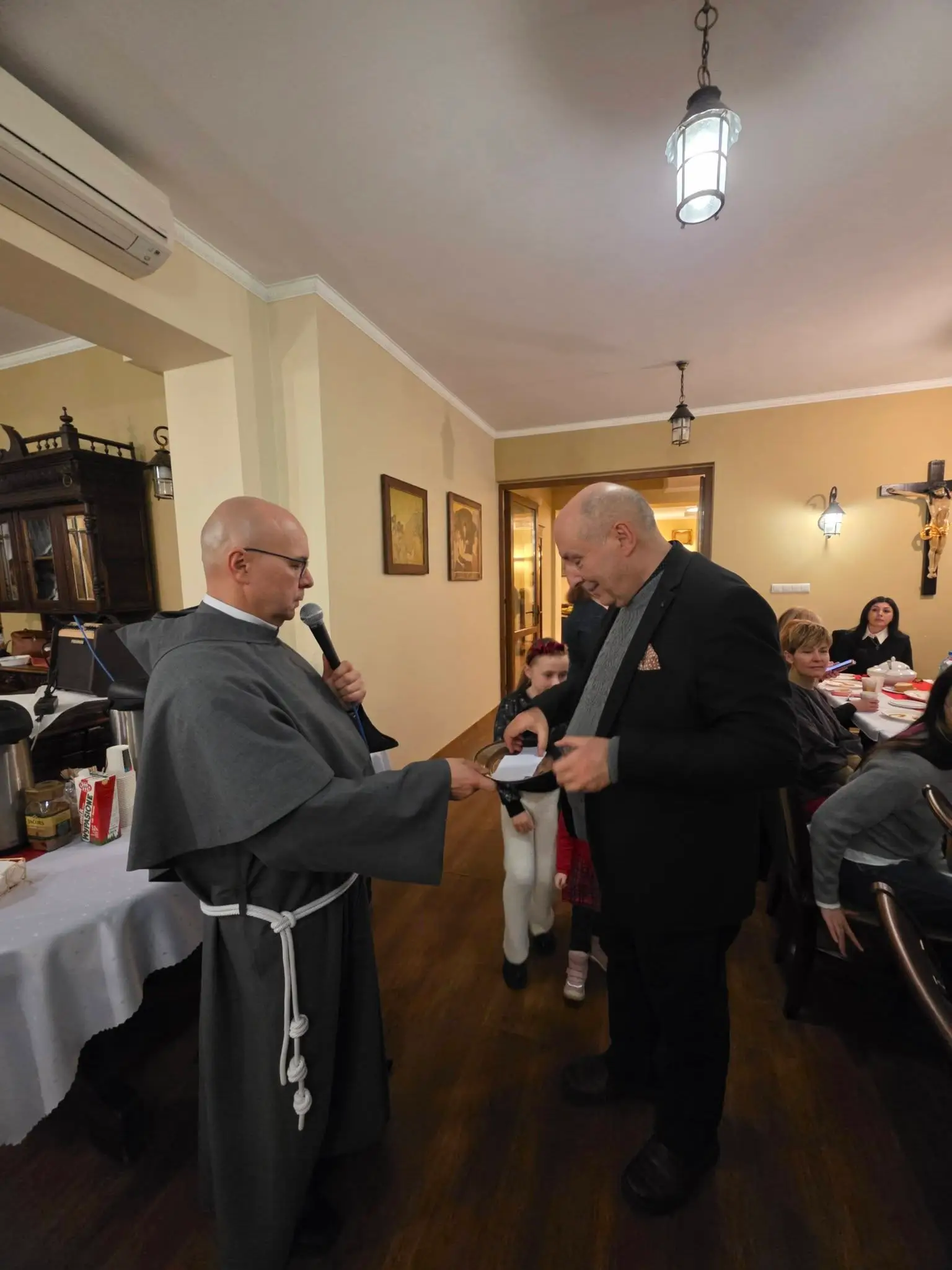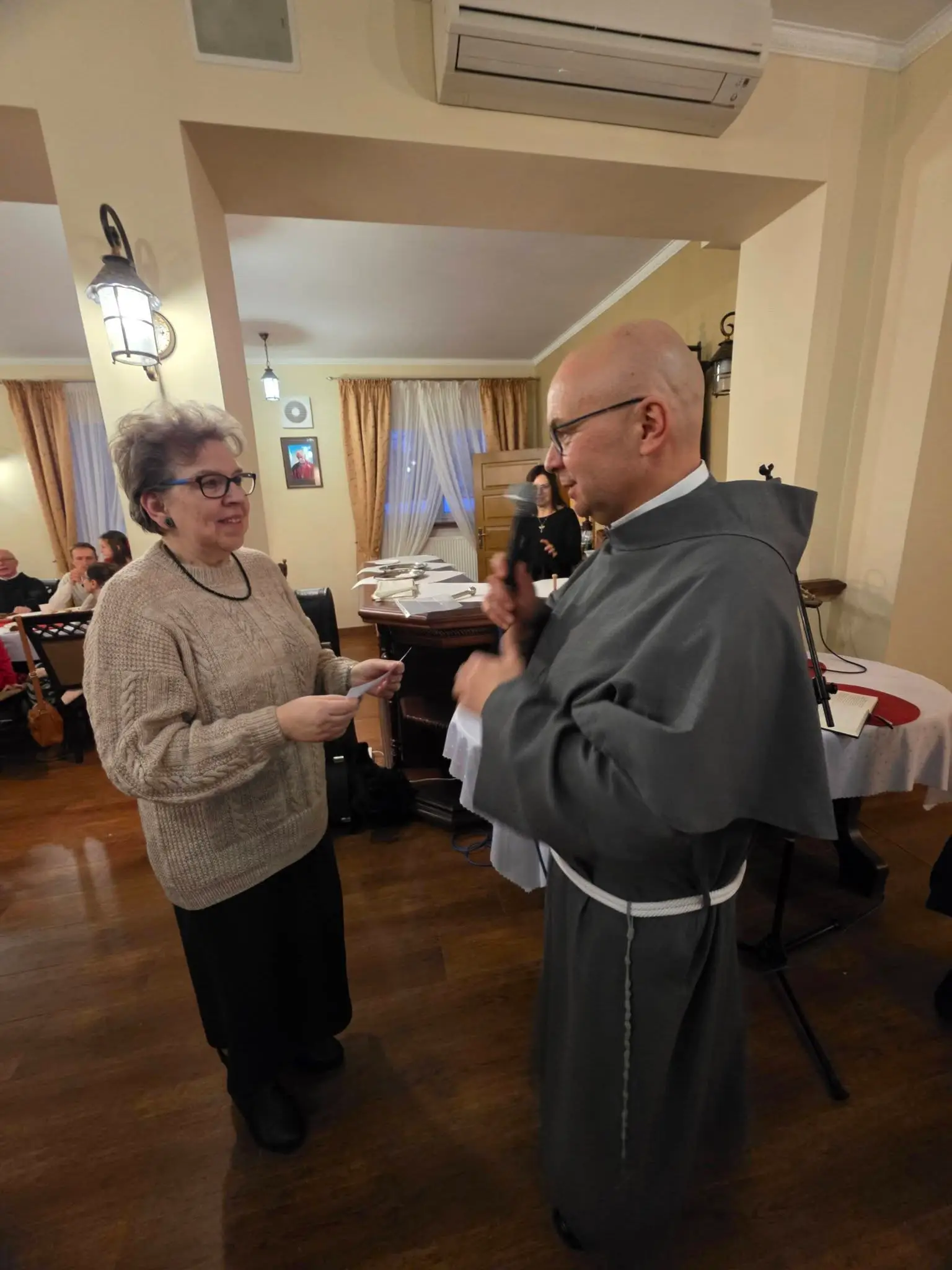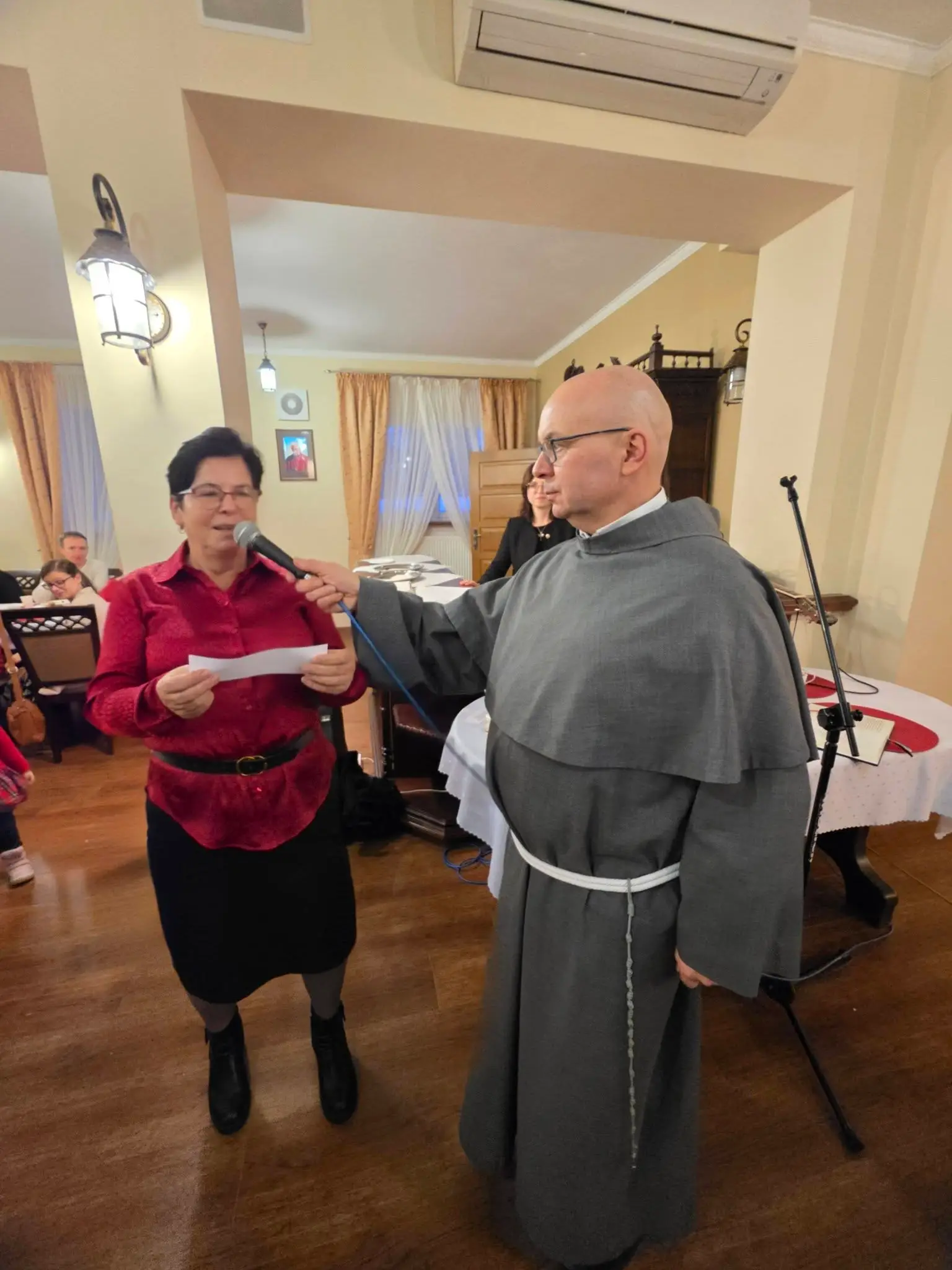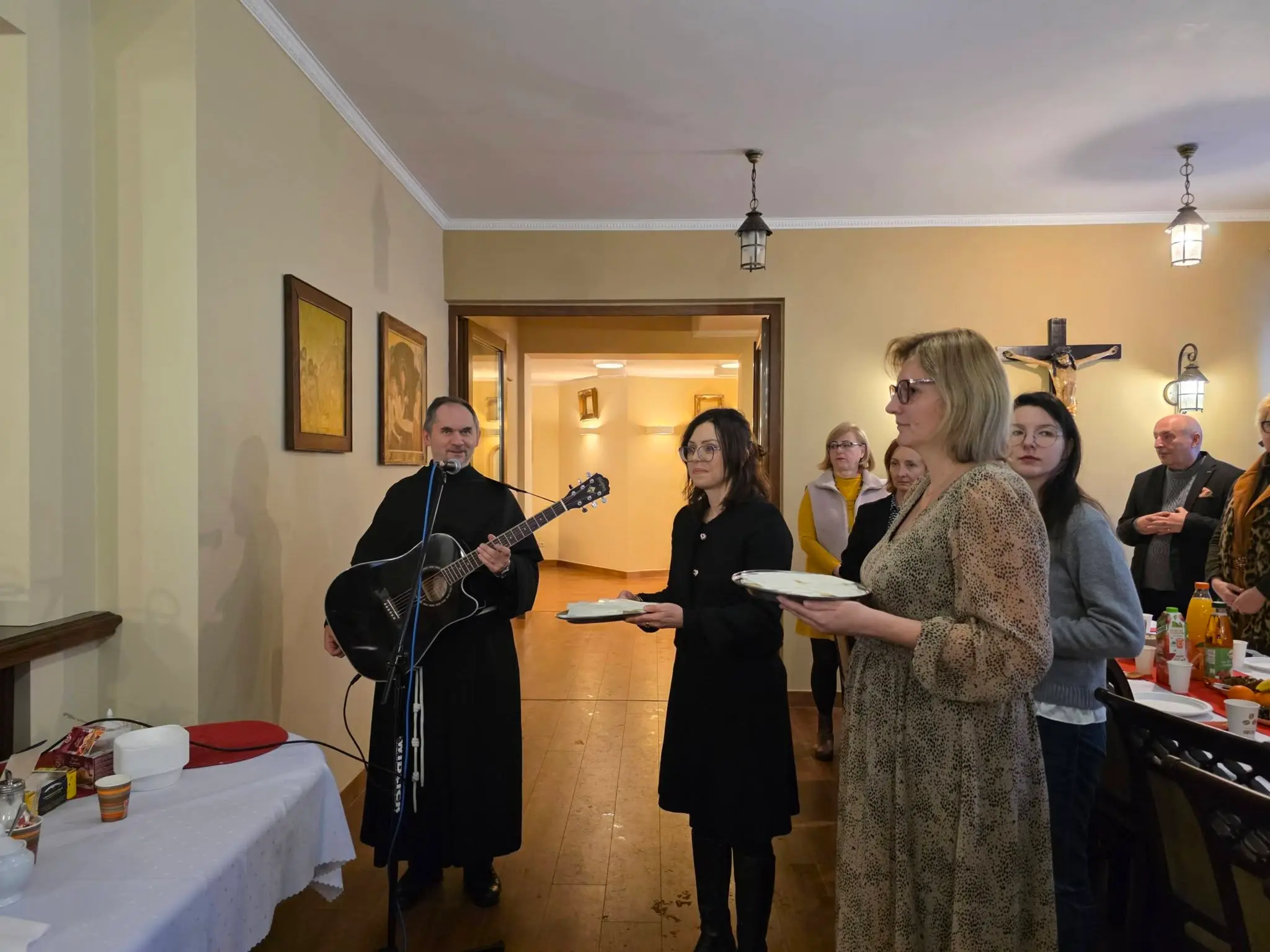 Zgodnie z tradycją wigilijną, spotkanie rozpoczęło się od wspólnej modlitwy, którą zainicjował o. Bronisław – proboszcz parafii składając życzenia a także błogosławieństwo opłatków. Następnie uczestnicy złożyli sobie płynące z głębi serca życzenia. Nie zabrakło także poczęstunku, wspólnego śpiewu kolęd oraz losowania patronów dla każdej grup duszpasterskiej.