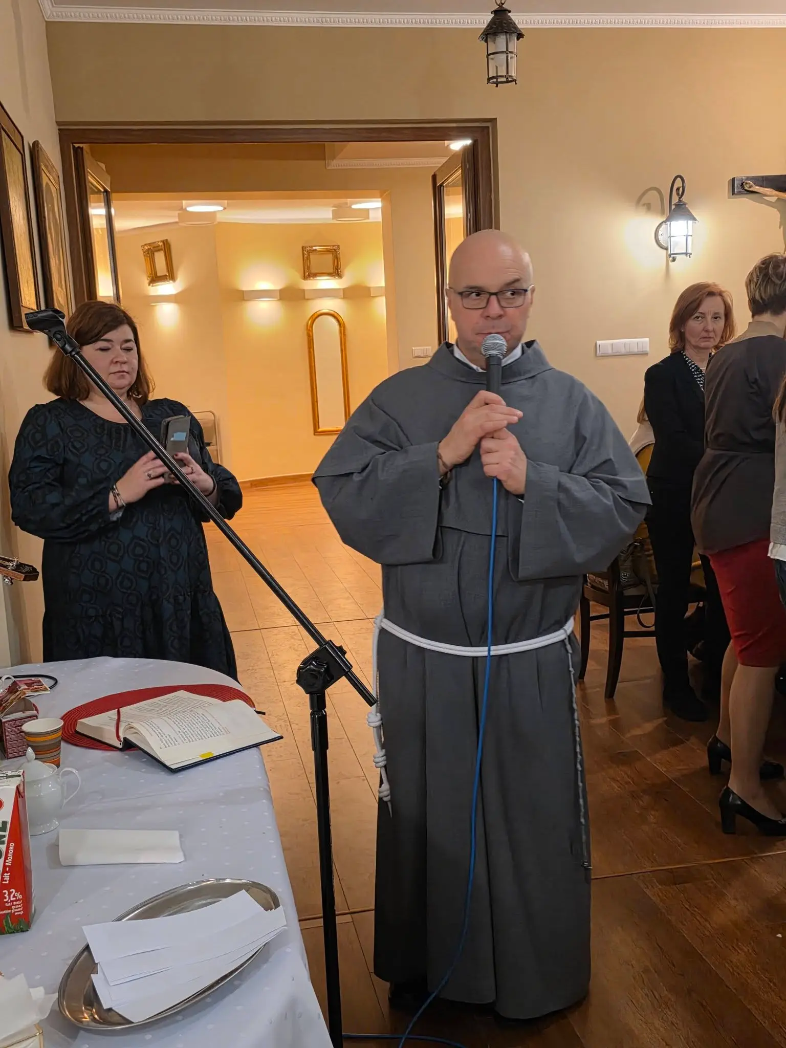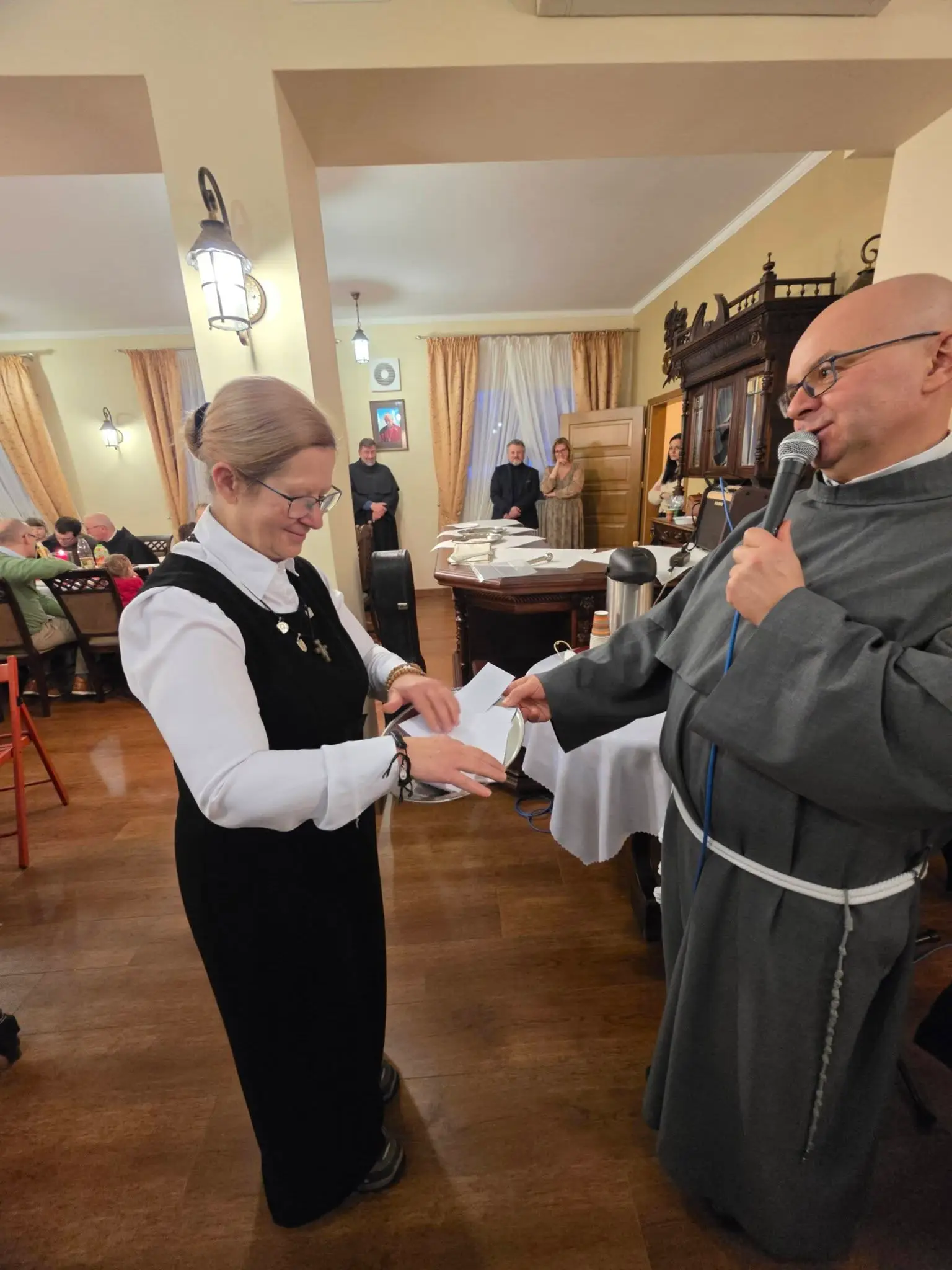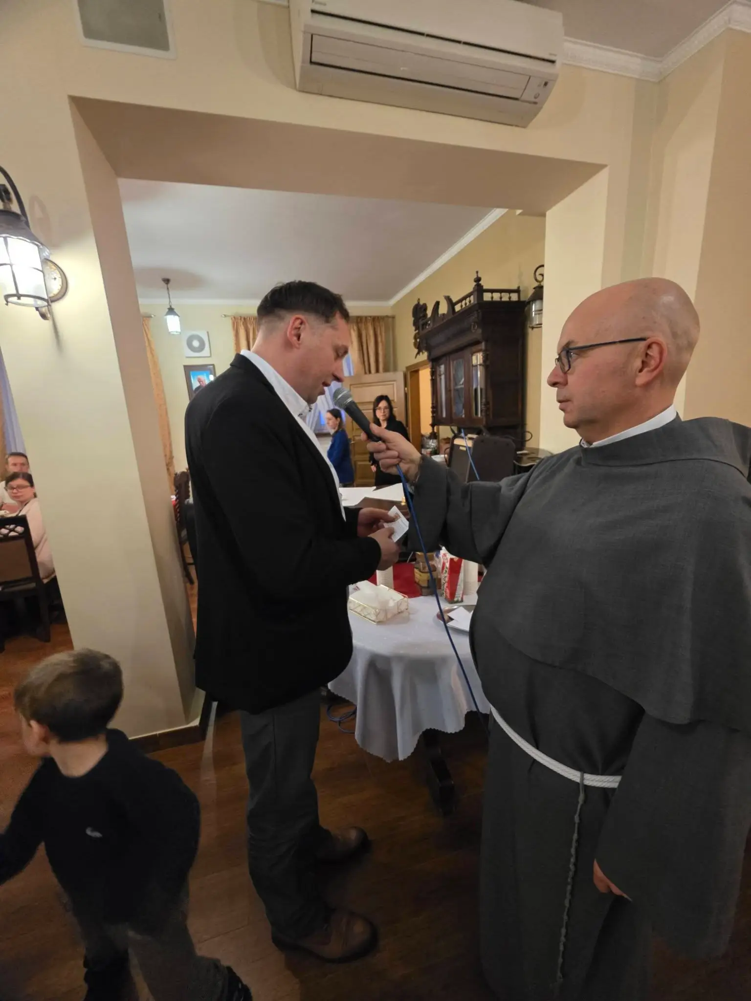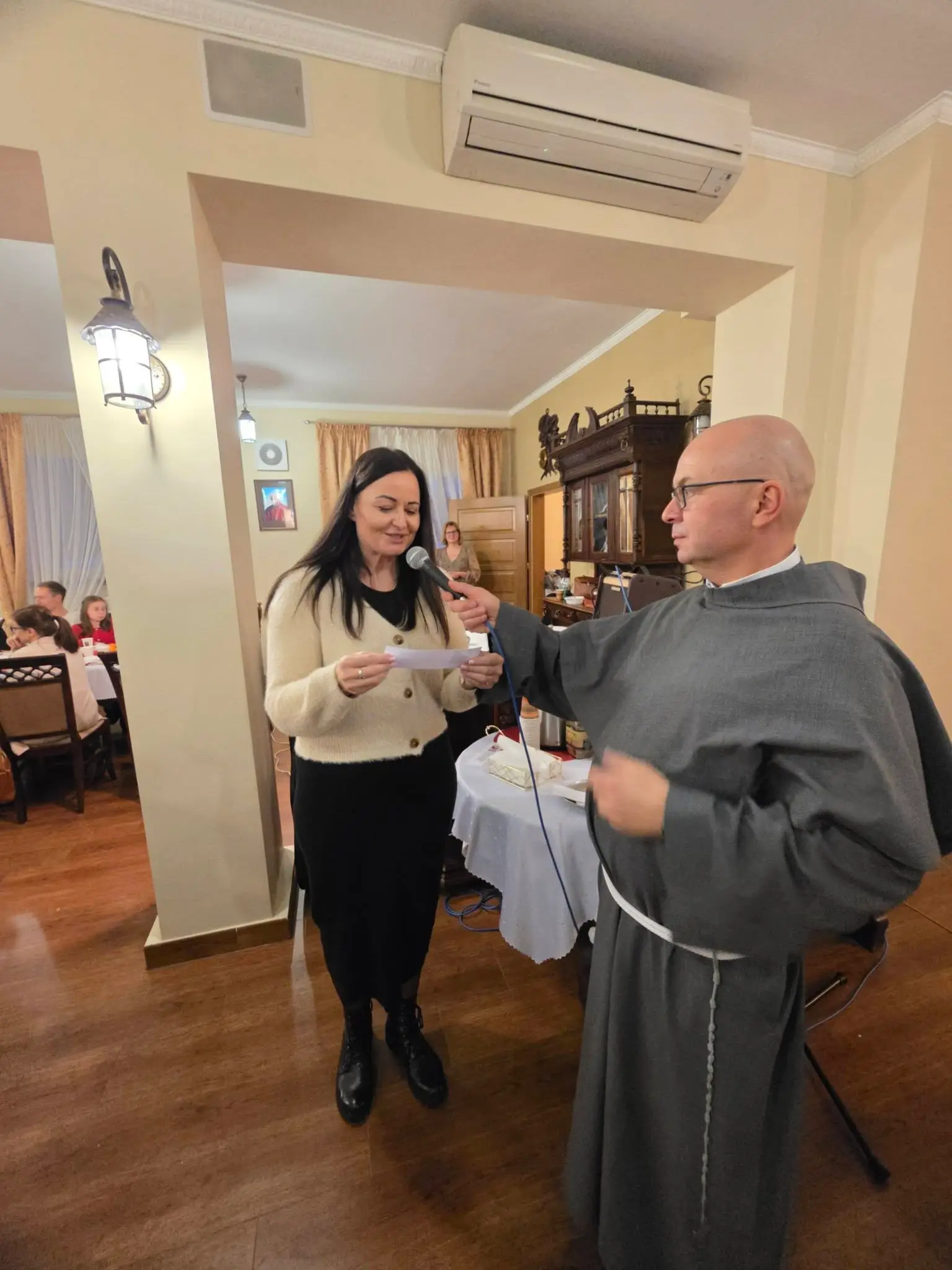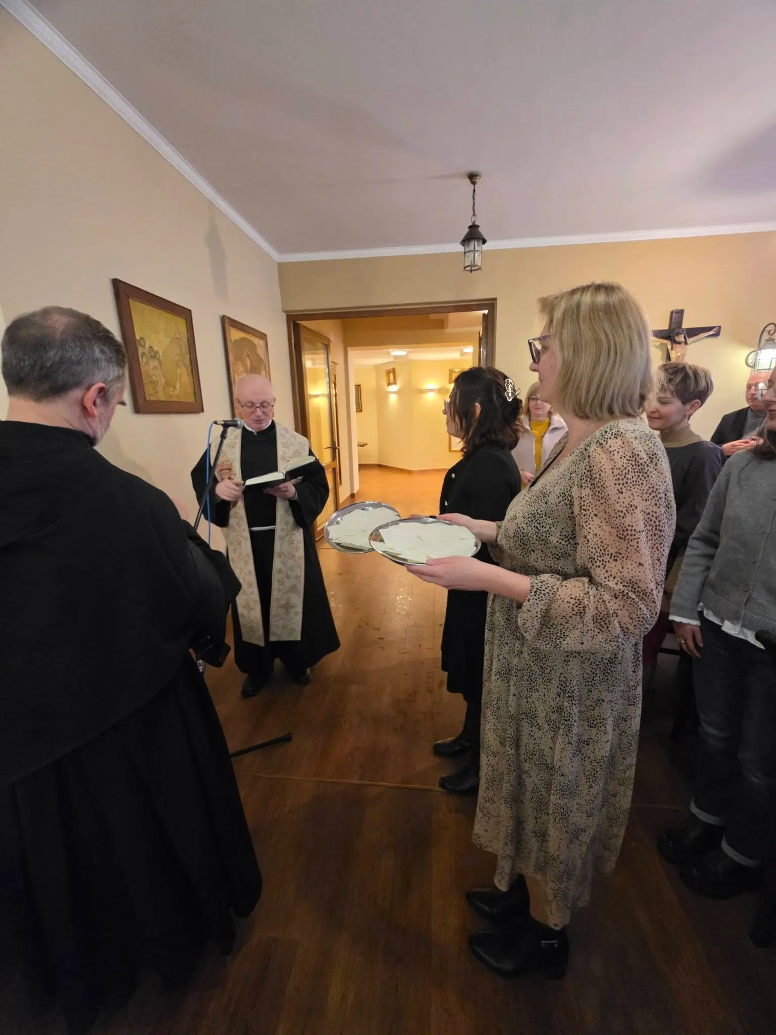 Zgodnie z tradycją wigilijną, spotkanie rozpoczęło się od wspólnej modlitwy, którą zainicjował o. Bronisław – proboszcz parafii składając życzenia a także błogosławieństwo opłatków. Następnie uczestnicy złożyli sobie płynące z głębi serca życzenia. Nie zabrakło także poczęstunku, wspólnego śpiewu kolęd oraz losowania patronów dla każdej grup duszpasterskiej.