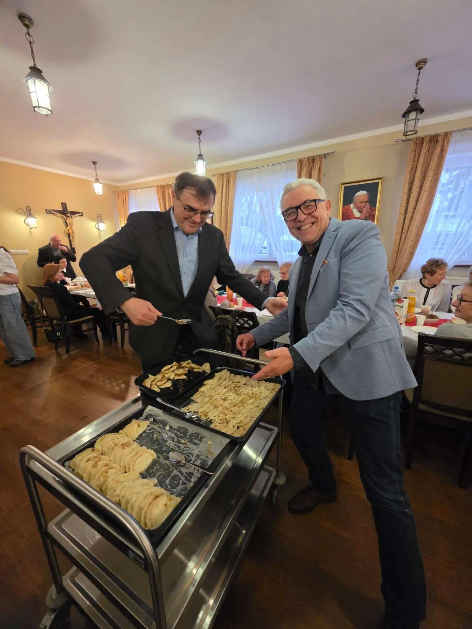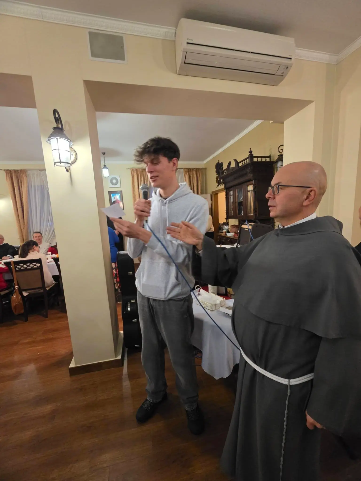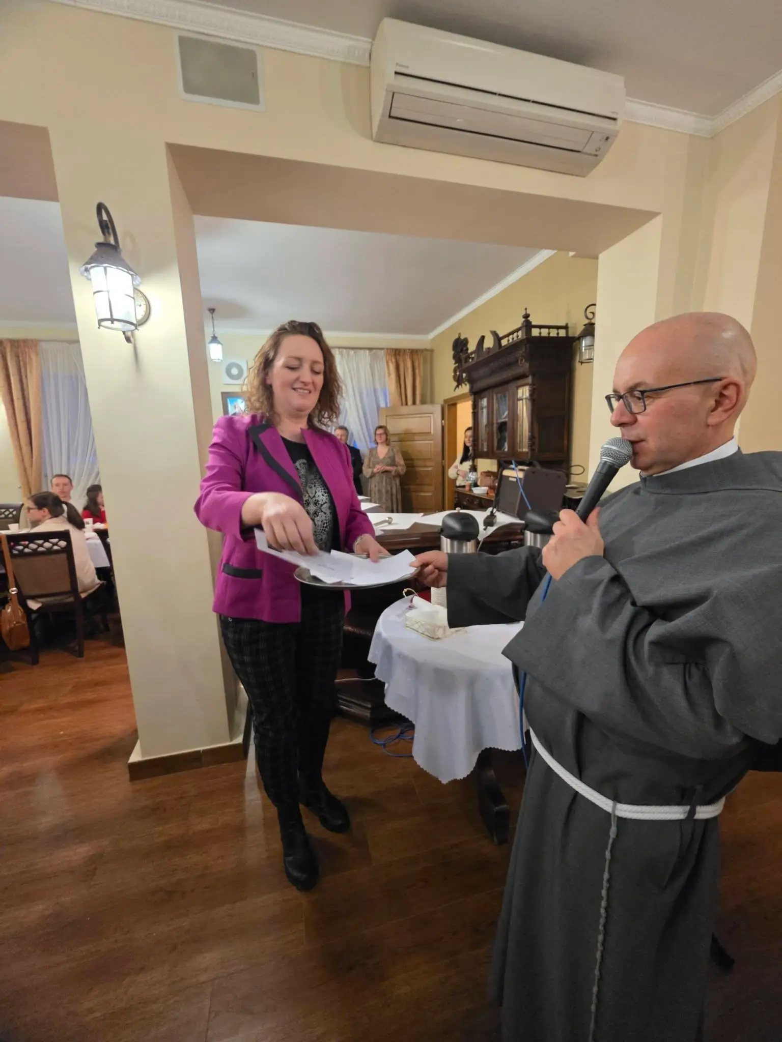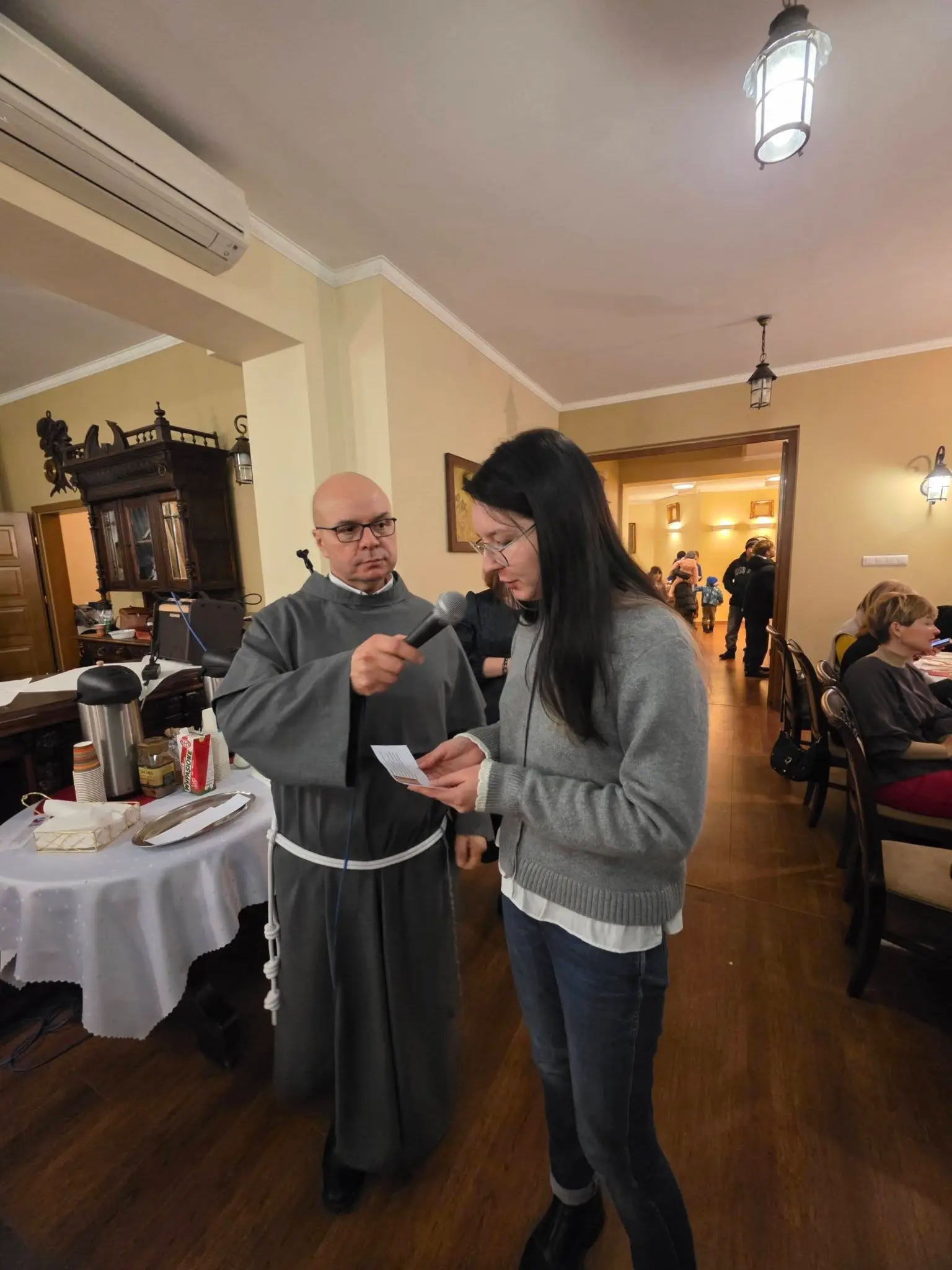 Zgodnie z tradycją wigilijną, spotkanie rozpoczęło się od wspólnej modlitwy, którą zainicjował o. Bronisław – proboszcz parafii składając życzenia a także błogosławieństwo opłatków. Następnie uczestnicy złożyli sobie płynące z głębi serca życzenia. Nie zabrakło także poczęstunku, wspólnego śpiewu kolęd oraz losowania patronów dla każdej grup duszpasterskiej.